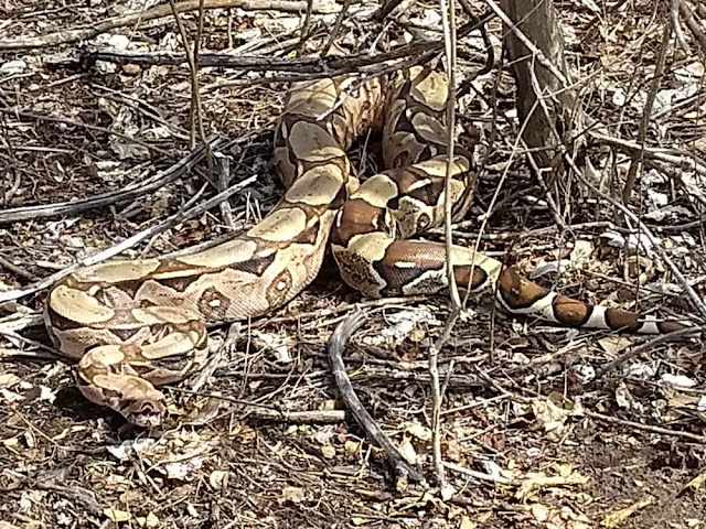 Após ter sido capturada pela equipe, a jiboia foi libertada em uma área de preservação ambiental.